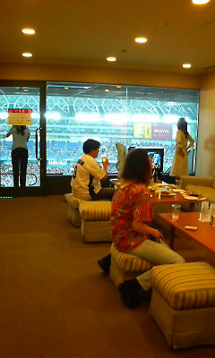 シローさん・・お子様家族連れ・・・がんこ炉端の組合執行部さま・・ ご新規女子5名様・・ご新規23歳・ダーツァーの男の子は「まぐりや」君 だったっけ??? ![]() ダーツマシン、フル稼働で ![]() マチュさんね・・カード作り直そうネ・・ 「もう、やめる~~~っ」とか言わずにネ ![]() そして、ココさん・・オフ会、有難うございました 当初、寂しい感じになるかと思いきや・・・ ピッカリンリンさん、たーさん、たけやんさん・・ 個性豊かな方々のお集り・・・また、ココさん弾丸トーク・・ 炸裂でよかったっす・・次回も、楽しみにしておりますよ~~ で、昨日は・・きっぷさんのご招待により・・ 夫婦仲良く??? ![]() ![]() ![]() 京セラドーム・中日Vsオリックス戦に行って来たのであります それも、VIPルームだぜ!! こんな感じの10人位は入れるパーティールームの様な・・ 部屋までは、エスコートしてくれる女の子が・・ 緊張するがなぁ~~ なんと、80室くらい、このドームの7,8階にあるんですね~~ ちょいと、びっくり ![]() ほんでもって部屋の外にでると・・個別の観覧席・・ VIPだぁ~~~ こんな感じで・・・高い、高い・・内・外野席最上段より上だす!! ちょっと・・高いよ~柵、割と低いよ~~興奮したら、落ちるよ、って 野球の試合より、そこからの眺めと部屋の居心地に、出たり入ったり と、皆が・・・同じ行動をとり続け・・・ 興奮のまま・・あっという間に・・ゼロゼロのまま・・ 中盤に・・きっぷさん応援のドラゴンズ先制で・・4点奪取・・ きっぷさん、ご機嫌、ご機嫌 中田投手、完封ペースながら・・8回2点は奪われたものの・・ 最後は・・ストッパー岩瀬で、軽々・・終了と。 イイ試合でした~~~イイお部屋でした~~~ やっぱ~~~飲み過ぎました~~~ 皆、試しに行ってみてください・・なかなか、楽しめますよ の日曜でした。さぁ~~今週も頑張りましょう ![]() ビリヤード&ダーツ兎我野屋 営業時間 (月)~(土)18:00~ 日曜 定休日(変則あり) 大阪市北区太融寺町7-11 フジノビル5F 06-6367-5910 ポケットテーブル1台 ライブダーツ1台 ぐるなび 検索あり⇒⇒⇒⇒⇒ |