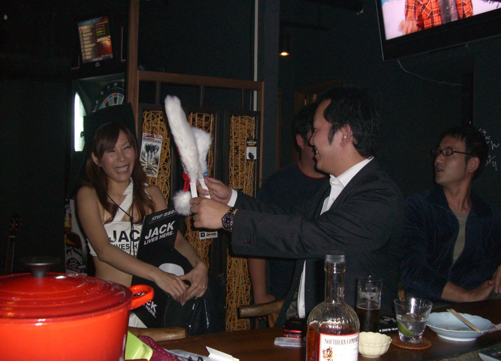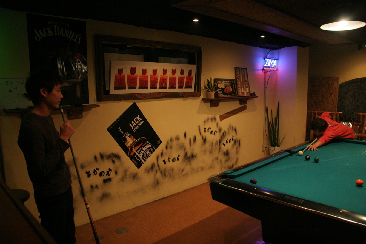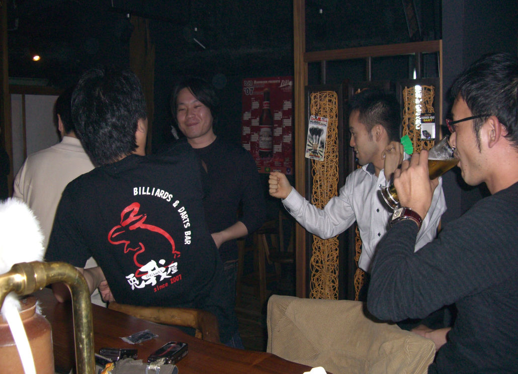 兎我野屋店主 です あの~ぅ・・・店の諸事情で、マスターず が停滞しており、 今月は、最後まで 真っ当出来そうにありません。 ごめんなさい!!また、月を変えて、やりますんで・・ てな訳で、昨日は、しゃべりすぎて、くたびれた火曜日・・ 程よく、賑わっていた、兎我野屋でした!! 常連様、Wii したり、ビリ したり、ダーツしたりで みなさん、フルコース、元気ですね~ 感心!! 最後に、kowさん、ありがとう・・藤本・男子プロ 呼んで着て頂いて・ また、サインが増えた・・・ウフ・・ で、もって、今日は、ダーツ交流戦・第2節 in 兎我野屋 前回は、完敗でしたので、今日は、頑張ってよ~~~~ あ、それと、本日の 店長代理は 先日、ご新規で来られた、かよ ちゃんれす。 とっても、ノリノリ系です お楽しみに~~~~~ ビリヤード&ダーツ バー 兎我野屋(POOL&DARTS BAR) 大阪市北区太融寺町7-11フジノビル5F 06-6367-5910
