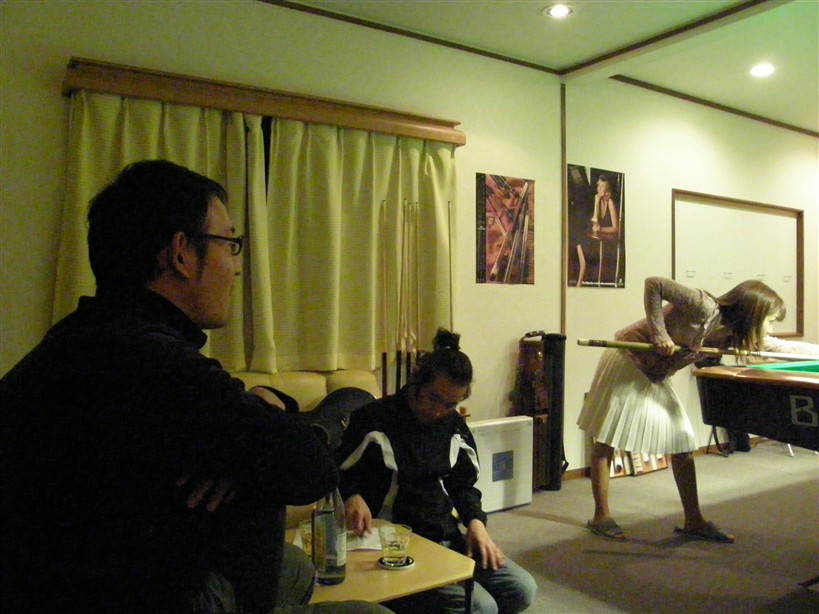 ピークの兎我野屋れす!! 喧嘩って、体力いるん、で・す・ネ・・・ さてさて、昨日は、急に寒くなったせいか、お客さん、少なく・・ なっ○んさん、と ノンアルコール、勝負!!! 酒飲まずに、ビリヤードするって、こんなに楽しいものかと・・・ はじめてかなぁ~、アルコール無しで、撞くのは・・・ まぁ~、最近の記憶をたどっても 無い、ない!! そして、一回だけ、勝たしてもらった・・うれしい~!! これからは、呑まずに 撞こう!! 店から 酒 排除してやる!!???ってな、月曜日であった。 ビリヤード&ダーツ バー 兎我野屋(POOL&DARTS BAR) 大阪市北区太融寺町7-11フジノビル5F の、前に、表彰式、第2弾 を 忘れそうになってた・・ 兎我野屋店主■■■です てんちょ、が、車に 轢かれました・・だけを、ご報告! さて、ダーツ交流戦・本番!はい!写真→ 戦果は、負け! みなさん、頑張ってきたはず・・結果は、しょうがない!! 来週は、ホームです、この借りは 必ず、返しましょう!!!! で、店の方は・・写真→ 店長代理、からっき~&たべちゃん!! サンクスです。 わたくし、やる事、全く、無し!!!! なんで、店の様子を 速記にて 収集・・・ たべちゃんが、口説きモード・・たべちゃんが、えりちゃんのTEL 聞いてた・・あんまり、いけてない・・特に その帽子が。 前のアフロの方がいい・・どっかに、その写真が・・ 横で、からっき~が 口説きモード・・でも、一人は、人妻ですよ、 気をつけて・・いったい、誰を紹介してもらおうと、企んでいるのか? さすが、からっき~、その左の彼女が気に入ったらしく・・・・ 分かりますよ~、声の感じがイイ~(俺も好みです!) 只今、メールの交換が始まったようです、でも、彼女は、気が 無いようですが・・撃沈ですな~ さぁ~、からっき~、どうする?本人は、とっても、嬉しそうですが・・ 現場より、お伝えいたしました・・何、書きまくってんねん、俺! んで、今日の アフターは、立ち飲み処へ・・・ 以上、飲みすぎの店主■■■ でした。お陰で、鬼嫁は、まだ、寝ております!! ビリヤード&ダーツ バー 兎我野屋(POOL&DARTS BAR) 大阪市北区太融寺町7-11フジノビル5F 06-6367-5910 |