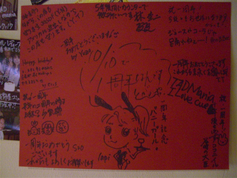 昨日は、大変、賑わって頂き・・・イベントご参加頂いた、皆皆様、本 当にありがとうございますの気持ち一杯の兎我野屋店主です まぁ~、良く飲ましていただきまして・・肝臓大丈夫か?俺?鬼嫁は? って、昨日、賑わいの中で、ご近所のダーツバー・エタニティーさん とこと、ダーツの交流戦を始める事に・・ そう、この間、酔ってる勢いで、約束してしまった、続きの話・・ 内容をわざわざ詰めに店員さんが、ご来店下さり・・実現です!! 11月より毎週、特定日に4人一組で2時間内での対抗試合を実施、 4節行い最終勝敗店舗を決定するもの・・・ ゲーム内容は、現在検討中・・ というものです。 チーム兎我野屋・・ さあ~、今からメンバー集めに入りますんで、みなさん、エントリーよ ろしくです!! ビリヤード&ダーツ バー 兎我野屋(POOL&DARTS BAR) 大阪市北区太融寺町7-11フジノビル5F 06-6367-5910 |