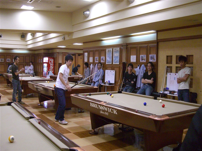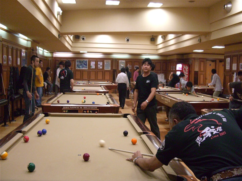 い、やっぱり、終わってからのOFF会で飲みすぎて、帰りはベロベ ロ・・鬼嫁に手を引かれながら帰宅した兎我野屋店主です・・・ さすがに2回目とあり、緊張感もなく楽しいビリヤードができました。 成績は、結果2勝4敗・・・勝ったのは、同じC級だけ・・B・A級さ んにはリーチを掛けながらも、やっぱ練習・技術差で・・ しかし、入れるべき球は、いつもより良く入ってくれ、大満足・・・ まだまだ、度C級卒業できないけど・・次回は、格上をやっつける目標 ができた・・レベルの低い話だが、頑張る・・・予定・・ んで、話は変わりますが・・毎週・水曜日 うちの店長が光岡 ずんこ プロレッスンに行くようで・・開店3時間ほど、てんちょ不在現象が 起こります・・・この時間、誰か店長代理してみませんか? 男性・女性 経験関係なく・・一度、カウンターの中で、そんな事やっ てみたい方、ご一報ください・・飲み放題条件で!! 兎我野屋特別ルールでご参戦できますので・・ これ、本気の話ですんで・・待ってま~す!! さあ~、10月も2週が終わり、9球マスターず 後半戦・・・皆さん、がんばってポイント稼ぎに 来てくださいな・・ダーツは、来月に向かって・・メンバー編成をして いかなくてはいけません。 皆さん、忙しいでしょうが、兎我野屋へCOME ON!!!! ビリヤード&ダーツ バー 兎我野屋(POOL&DARTS BAR) 大阪市北区太融寺町7-11フジノビル5F 06-6367-5910