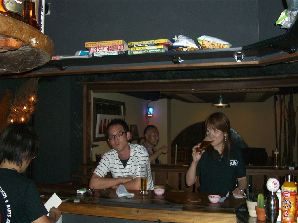 のうち2回も三連休がある、一番いい月だなぁ~っと思っていたもんで す・・・懐かしい!! 前置きは・・・で、前にも案内した <兎我野屋9球マスターず> いよいよ、10月1日から はじまります!!!って、誰も知らない?ん、寂しい・・・ ルール等々は右の袖、PHOTO ALUBAM 兎我野屋写真集の上部をクリックしてね・・ 1ヶ月のロングランですから、とにかく参加することが最優先かと!! ハンディー対戦ですから、ビギナー、上級者、関係なく遊べるよ!! 各賞他、とび賞的なものも考えてます。 みなさん、奮ってあそびにきてくださ~ い!! ビリヤード&ダーツ バー 兎我野屋(POOL&DARTS BAR) 大阪市北区太融寺町7-11フジノビル5F 06-6367-5910 PR 昨日、土曜日に光岡さんとたべ~ちゃんと何故か?明日、大阪城で10 KMランニングしょう~って、事から話が発展し、いつの間にやらそれ が、BBQしょ~ってな事に・・急遽!!4時 現地集合で・・ 突然の河原千尋Pが・・・参戦!!! BBQ終了後、2次会だ~!!と 梅田へ・・ 今日は、よく遊びました・・何時やったんやろ、解散したのは・・ 参加頂いた、じゅんこP,ちぃ~P,なかむらさん、せこっち、からっきぃ ~、くっちくん、マチュさん、てんちょ、めぐちゃん、愛妻ひとみちゃ ん、皆さん遅くまでありがとさんでした~ ビリヤード&ダーツ バー 兎我野屋(POOL&DARTS BAR) 大阪市北区太融寺町7-11フジノビル5F 06-6367-5910