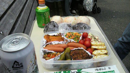 「花見」に・・・ ひとみママ・・・ 土曜晩、遅くまで店で飲みたくり、その後も寿司屋で、熱燗2合を・・ 途中から、記憶をなくしている感、満載で・・帰って来たにもかかわらず・・ 朝から(朝と言っても・・12時)、「よし!!弁当つくるw」 と、二日酔い状態で、飯を炊きだした~~~ せっせと作ること・・1時間強! 「さぁ~~できた!! 花見に行くぜぃ!!」 と、表に出た途端・・・ 「さむ~~っ」一昨日と打って変わって、肌寒い お天気も薄くもり・・風も少々強い 折角の爆弾おにぎり、腹もペコペコなんで・・ 「さむっ、さむっ」言いながら・・・速攻の花見&おべんとう!! さすがに周りの人達も寒そう~~~で・・ 30分で完食、そして、撤収 OAPのビルのなかで・・暖かい・自動販売機のコーヒーを 飲んで、さっさと、帰りました。。。 なんとも、色気のない「花見」でありました。。。とさ。 もう少し、暖かくないとネ |